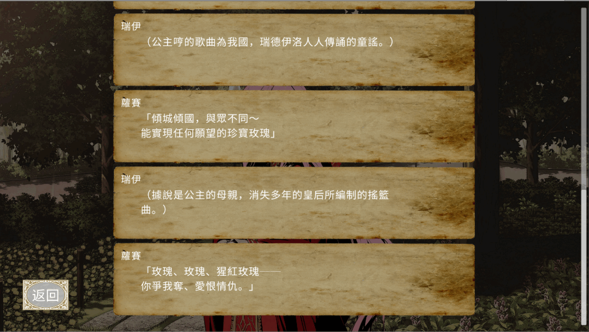 公主們成年典禮的數天前,她忠誠的貼身侍衛瑞伊突然被指控犯下不可彌補的罪孽。關在地牢的騎士要如何證明自己的清白?誣陷她的兇手又是誰?事實的真相又是如何?就問能實現願望的血玫瑰吧。