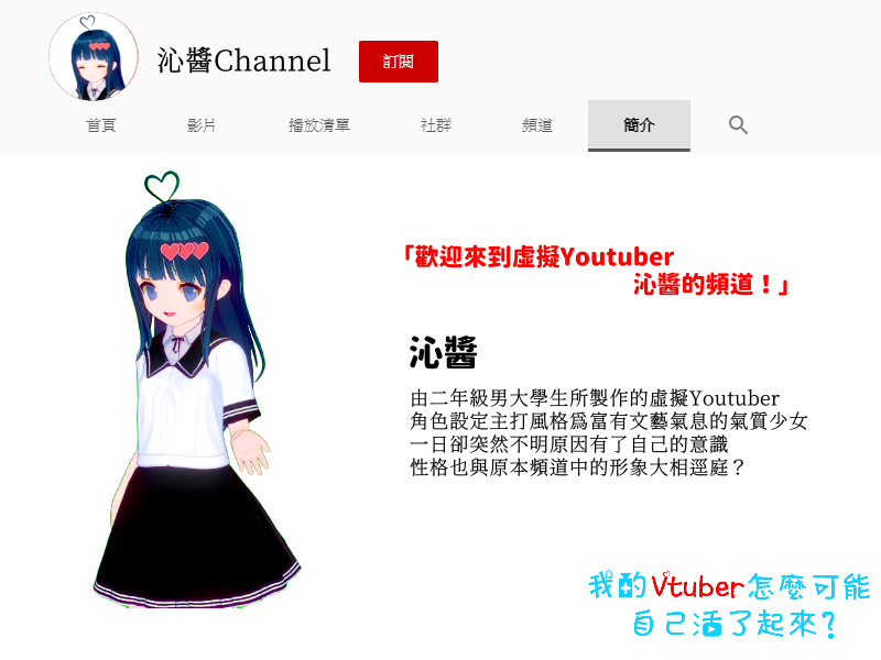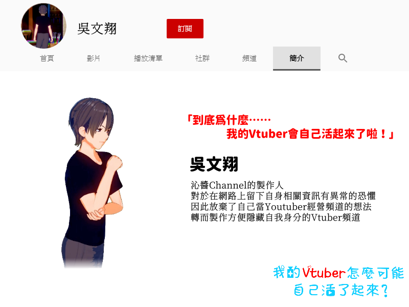 2018年末,二年級男大生吳文翔(阿翔)決定成為Vtuber頻道的製作人,名為「沁醬」的Vtuber就此誕生,