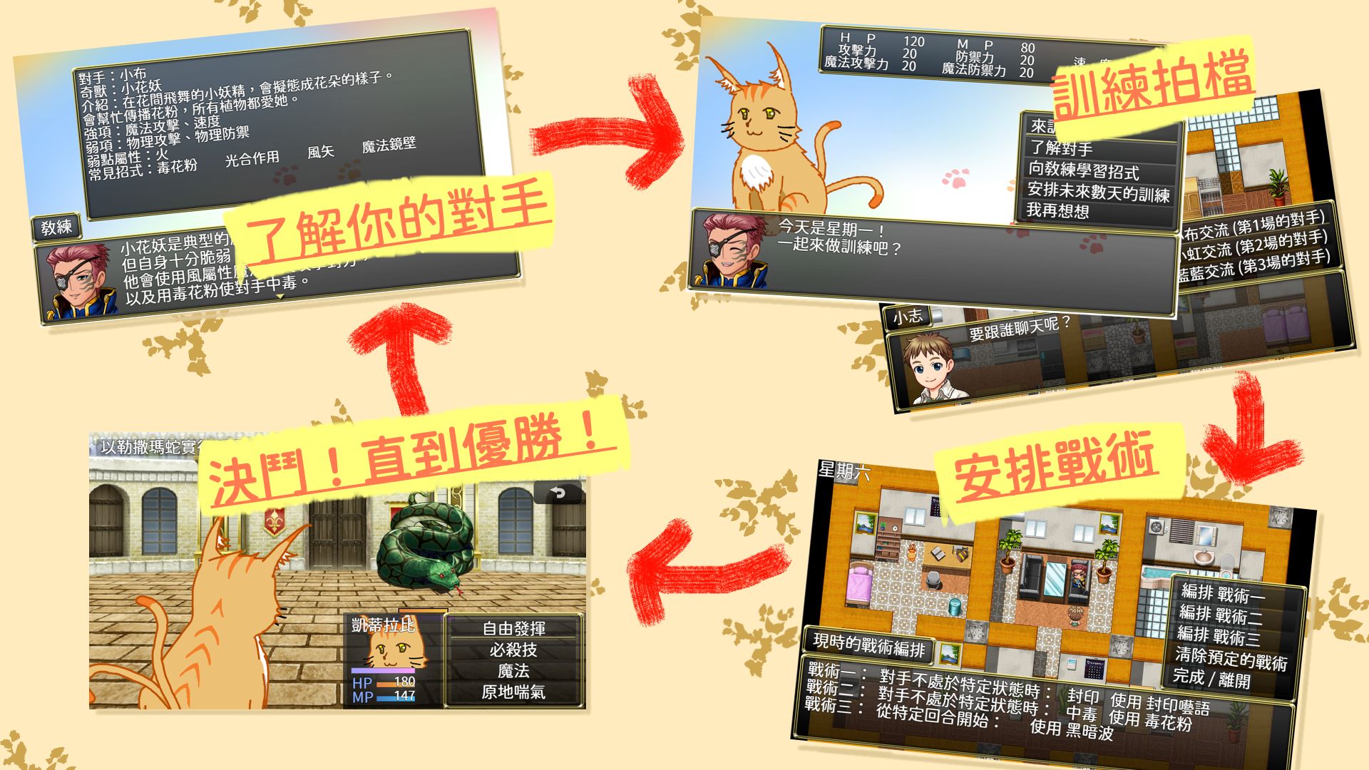 (2) 培育你的奇獸夥伴,用事前規劃的戰術,在自動戰鬥中打敗強敵吧!